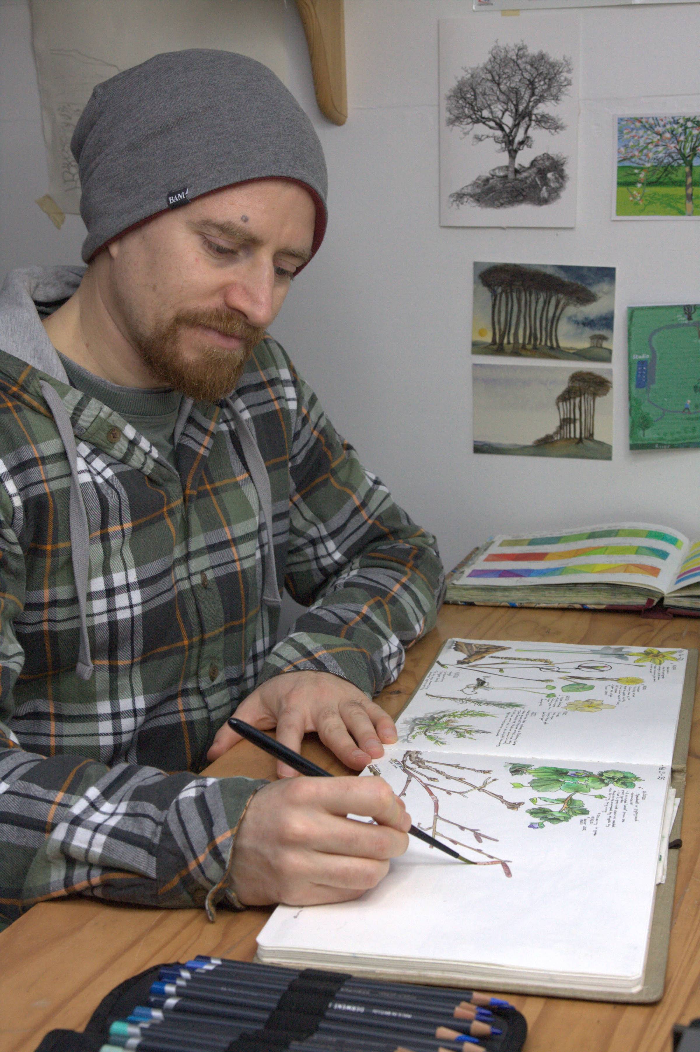 Alex is a nature journaling educator and artist, best known for making intricate nature journals and inspiring nature connection. He has written two books on drawing nature, and has been a guest lecturer at the Wild Wonder Foundation annual event. Alex also runs the Nature Journaling Circle.