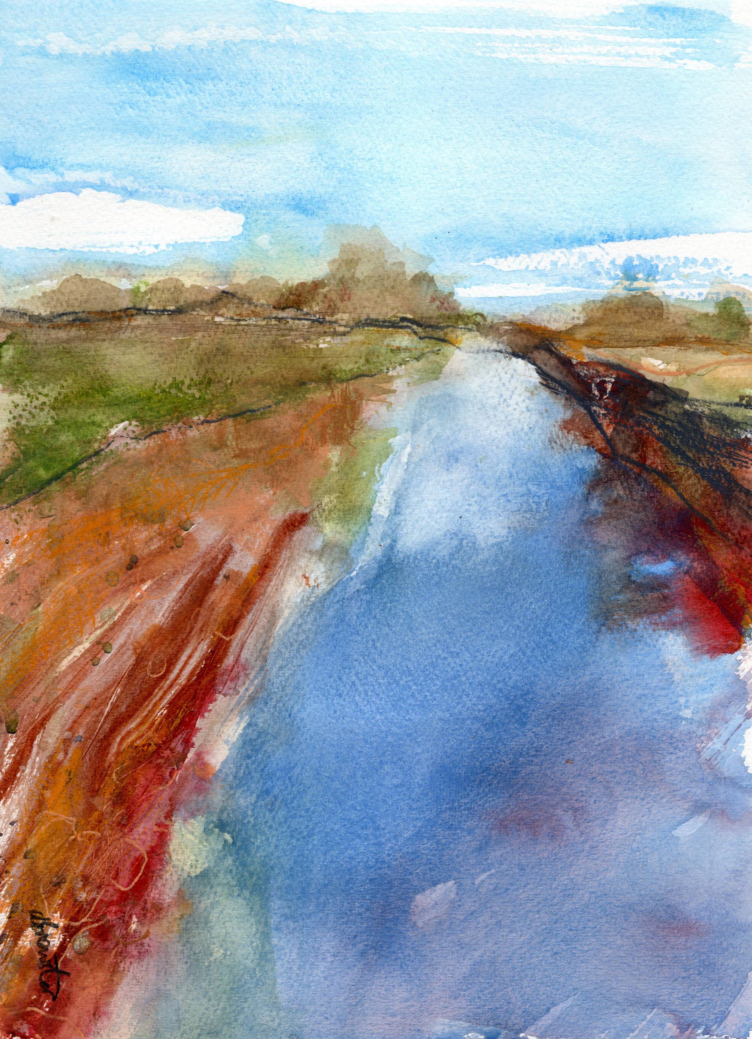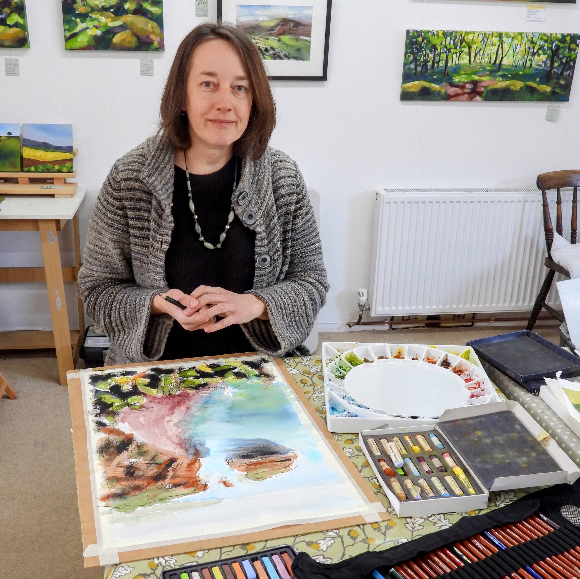 Anna's work is expressive, fast and loose, whether it’s mixed media landscapes, or ink and wash studies of flowers and food. She mainly works with watercolour and layers on top, and her work is for sale via her website, the studio and Pebble Gallery in Budleigh Salterton.
